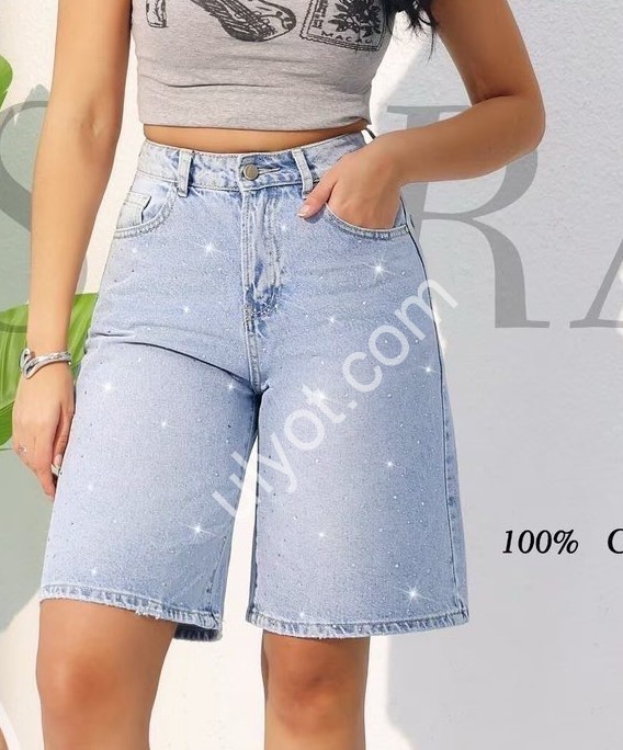 БЕРМУДЫ M.SARA (S-2XL) СТРАЗЫ ГОЛУБОЙ 6338-5