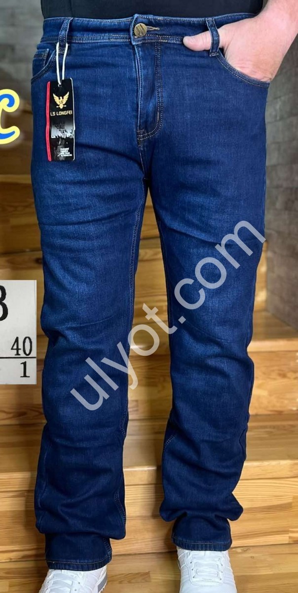 ДЖИНСЫ LONGFEI (32-40) ФЛИС СИНИЙ F1075B