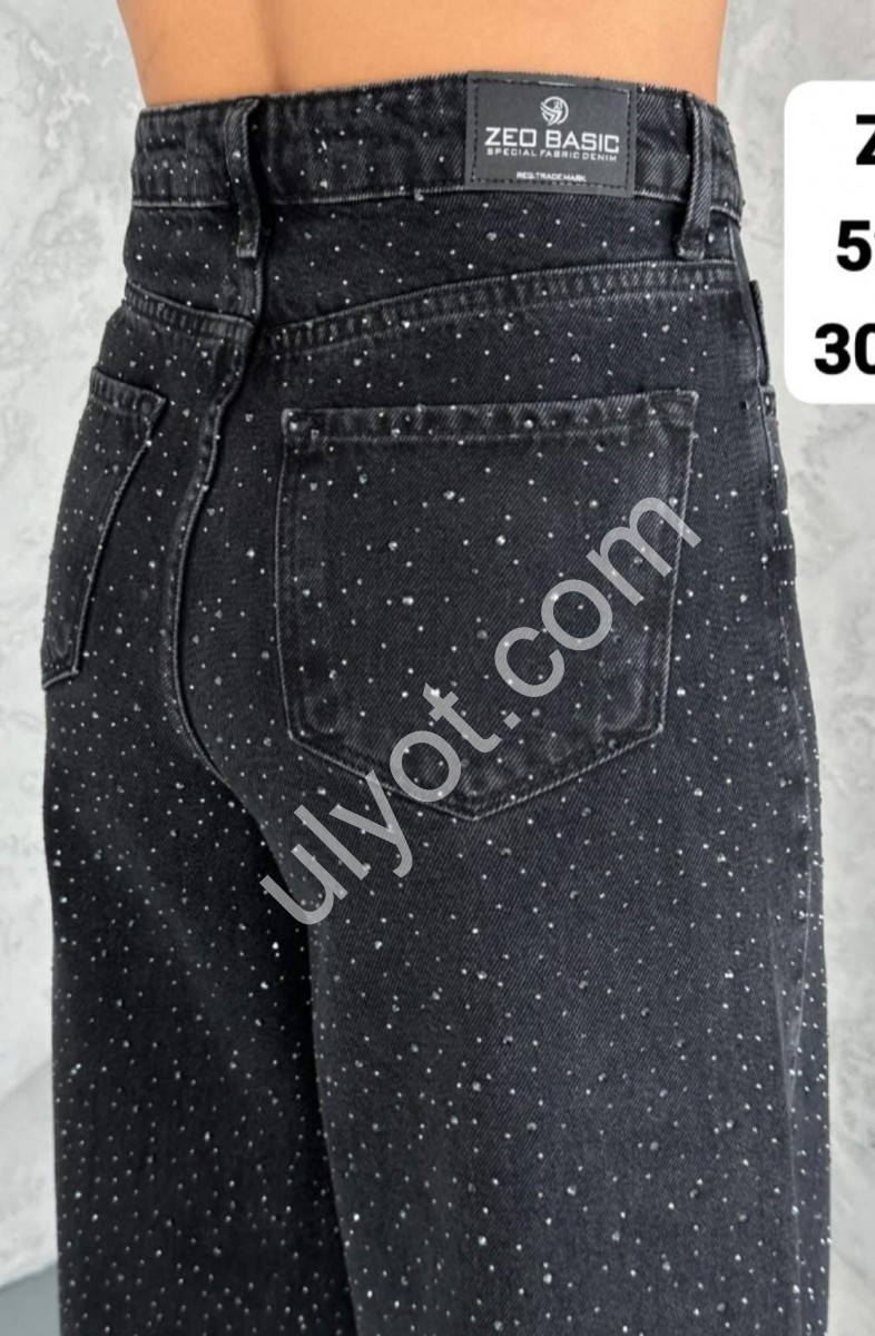 ДЖИНСЫ ZEO BASIC (30-36) СТРАЗЫ ГРАФИТ 5241