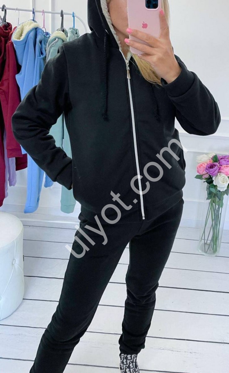 КОСТЮМ (42/44-46/48) ЧЕРНЫЙ ОВЧИНА+ФЛИС 2463
