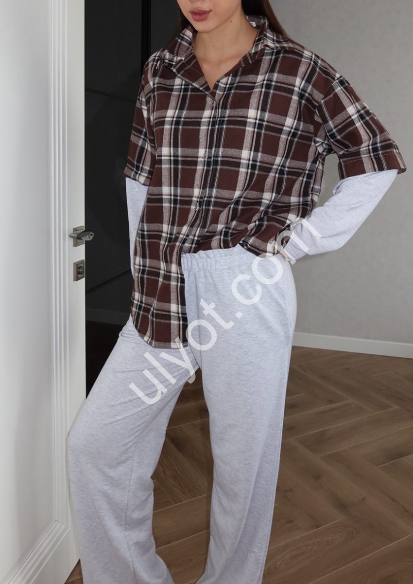 КОСТЮМ (OVER SIZE 42-46) ПРЯМОЙ ШОКОЛАД+МЕЛАНЖ 766