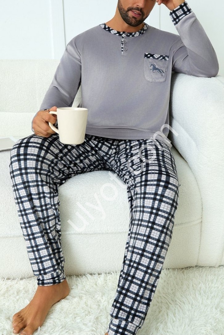 ПИЖАМА КЛЕТКА (M-3XL) СЕРЫЙ 70147