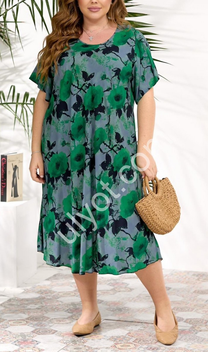 ПЛАТЬЕ (3XL-6XL) ЦВЕТЫ ЗЕЛЕНЫЙ 888