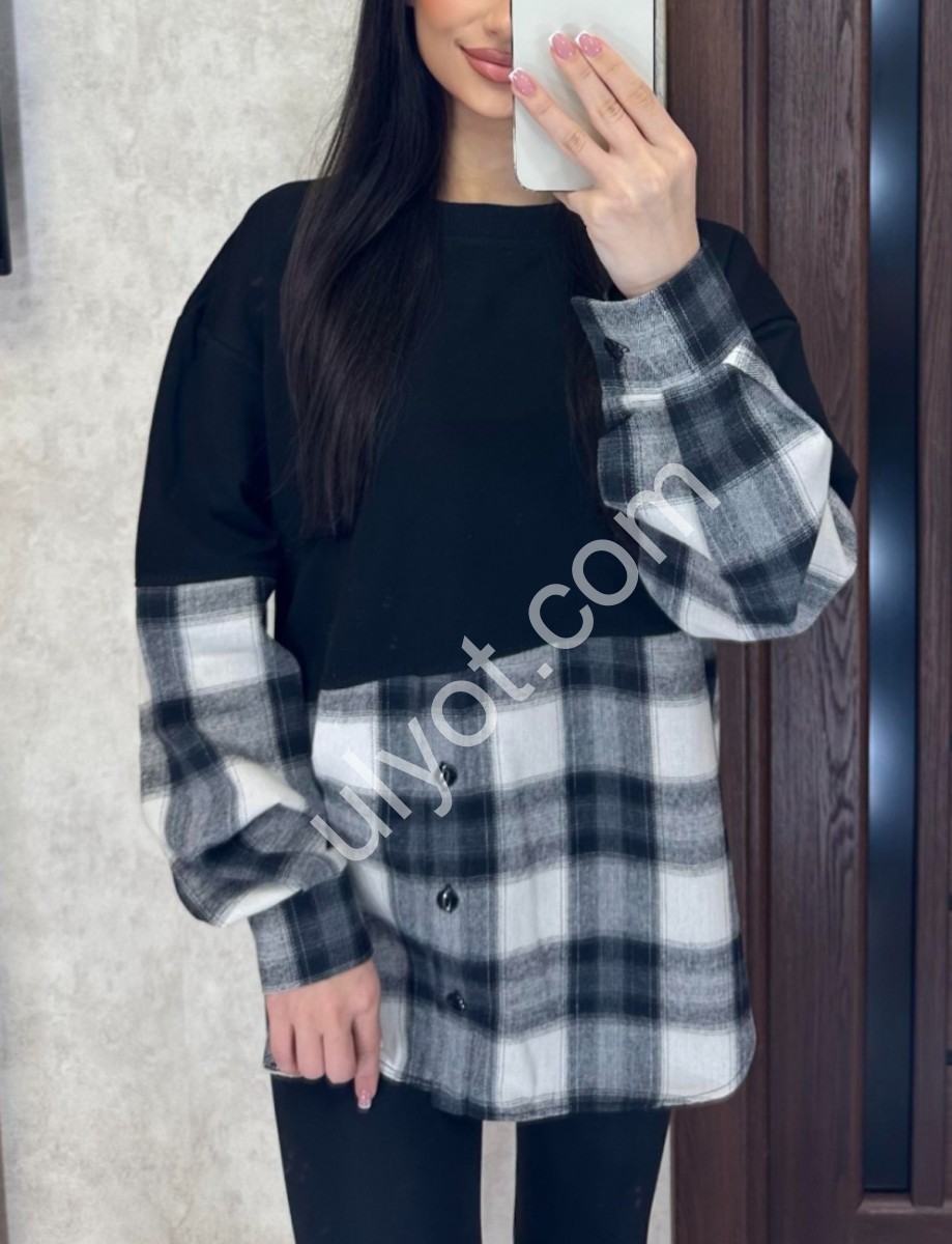 СВИТШОТ (42-48) КЛЕТКА СЕРЫЙ 7
