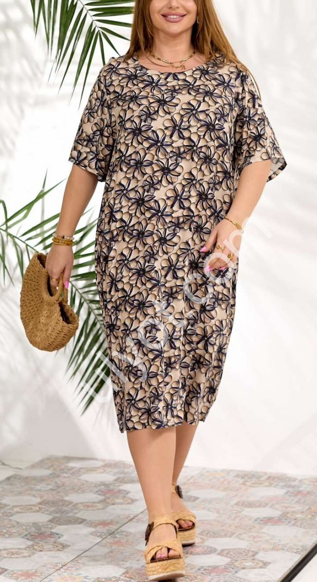 СУКНЯ (XL-4XL) КВІТИ БІЖ 666