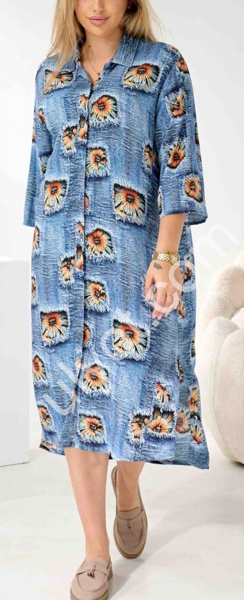 Сорочка-плаття JJF (2XL-5XL) СИНІЙ+СОНЯХ 1127